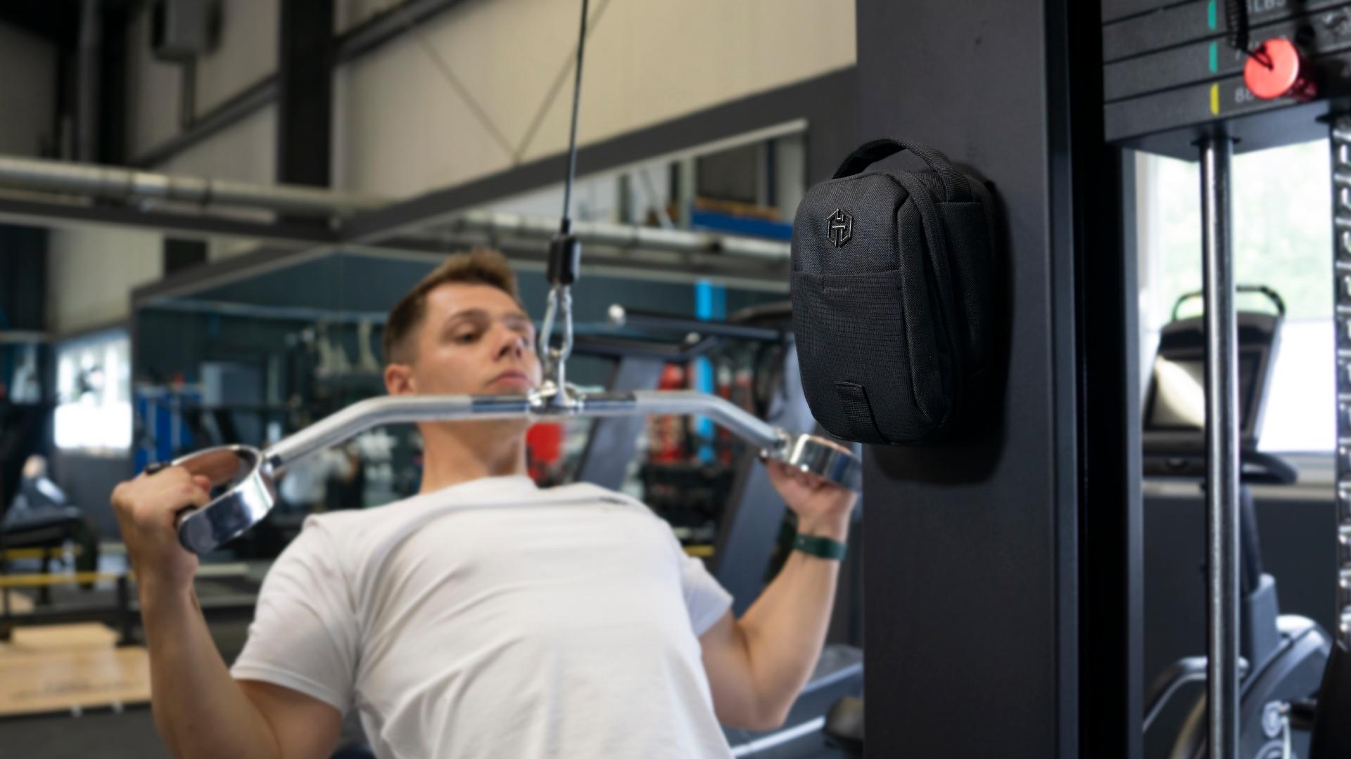 Dank integrierter Magneten haftet die Tasche zuverlässig an allen gängigen Metallflächen im Gym. Kein Bodenkontakt, kein Herumliegen – deine Essentials sind dort, wo du sie brauchst: griffbereit am Gerät.